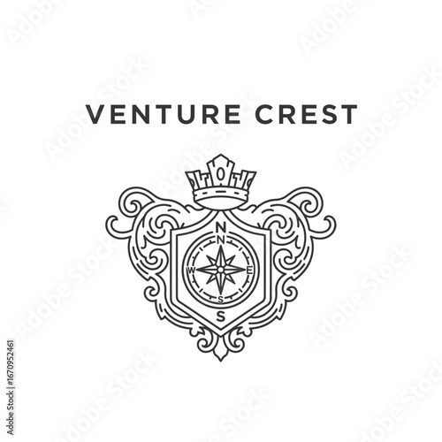 © Ahmadi, Obraz premium A sophisticated logo featuring a compass, crown, and ornate crest. Perfect for businesses seeking a regal and adventurous image.