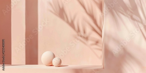 © ArpPSIqee, Fototapeta premium A sophisticated minimalist scene with a muted salmon pink background, Sparse geometric elements and soft gradients, Minimalist editorial style