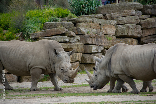 © Ross, Naklejka premium A Southern White Rhinoceros facing her Calf.