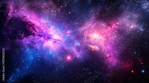 Fototapeta premium A space image featuring stars and a radiant purple-blue star at its core