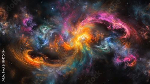 Fototapeta premium A space nebula is depicted in a 4k illustration with a colored background and...