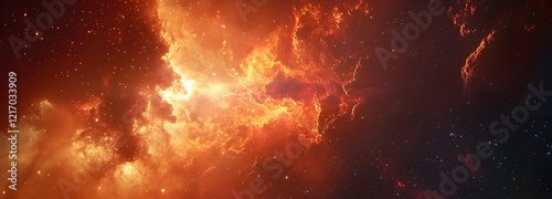 © ABC IMAGE, Naklejka premium A space view of a distant planet, surrounded by glowing stars and nebula clouds
