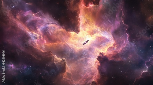 Fototapeta premium A Spaceship Navigating Through a Cosmic Nebula