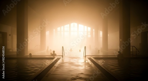 © Zeeshan, Fototapeta premium A spacious indoor pool filled with people swimming and enjoying the water.