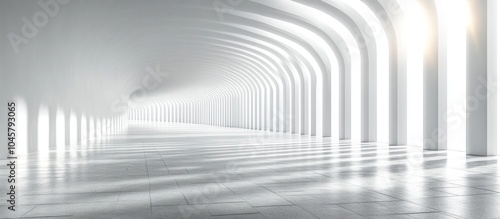 Naklejka premium A spacious, minimalist corridor with arched white columns and soft lighting.