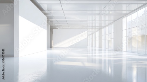 Fototapeta premium A spacious, minimalist interior with large windows and abundant natural light.
