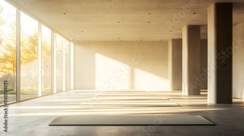 Obraz premium A Spacious Minimalist Yoga Studio Embracing Natural Light for Peaceful Yoga...