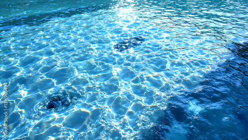 © Saksit, Obraz premium A sparkling blue water surface reflects sunlight, creating a tranquil and mesmerizing aquatic scene that evokes relaxation and beauty.