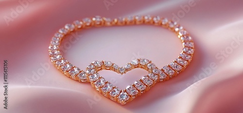 Fototapeta premium A sparkling heart-shaped bracelet on a soft, pink fabric background.