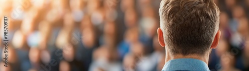 © Chanoknan, Obraz premium A speaker addresses a large audience, emphasizing connection and engagement in a professional setting.