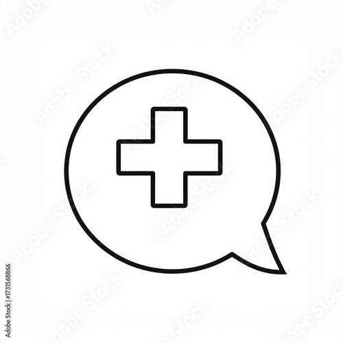 Fototapeta premium A speech bubble containing a plus sign, representing medical advice or...