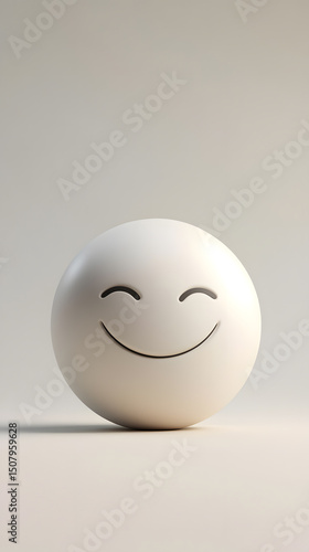 © BornHappy, Fototapeta premium A spherical sculpture with a cheerful smiling expression, set against a neutral background.