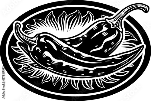 Fototapeta premium A spicy chili pepper illustration with sunflower isolated on white background