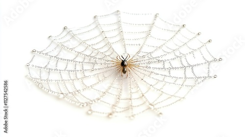 Fototapeta premium A spider is centered in a delicate, intricately designed web made of fine...