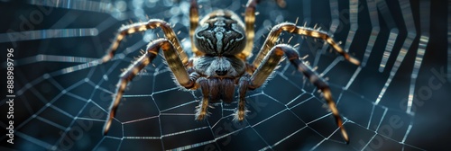 Fototapeta premium A spider is on a web. The spider is brown and black