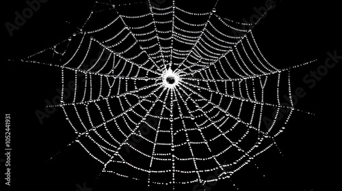 © arsyi_06, Obraz premium A spider web with dew drops on it.