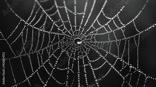 © Thanthara, Obraz premium A spider web with water droplets on it