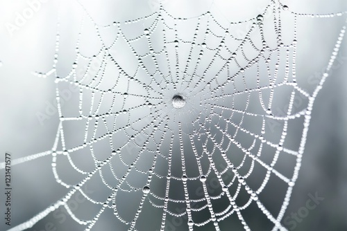 © iv, Obraz premium A spiderweb glistening with morning dew, a delicate and intricate natural design.