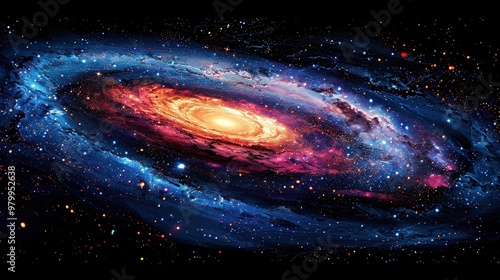 © Lexyat, Obraz premium A spiral galaxy with a bright core, surrounded by a field of stars.