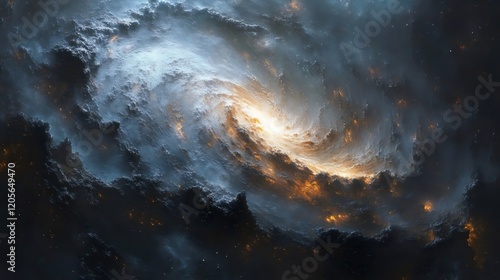 © Linus, Fototapeta premium A spiral galaxy with a bright yellow star in the center