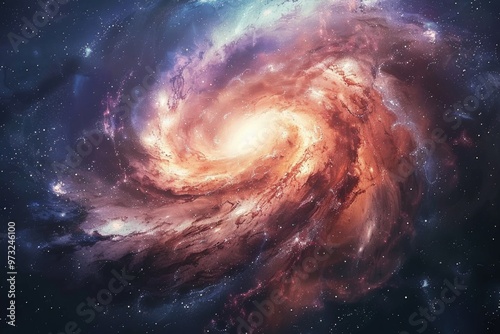 © Fotograf, Obraz premium A spiral galaxy with stars and cosmic dust in the background