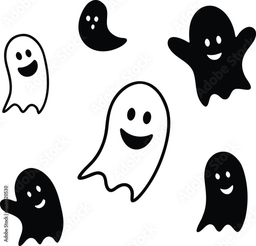 © MstZhorna, Obraz premium A Spooky Collection of Happy Ghosts in Black and White