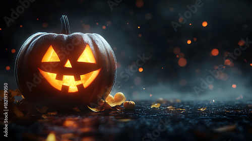 © Sohaib, Naklejka premium A spooky Halloween social media post template featuring pumpkin and halloween elements, black background, banner design with large copy space at the top right corner