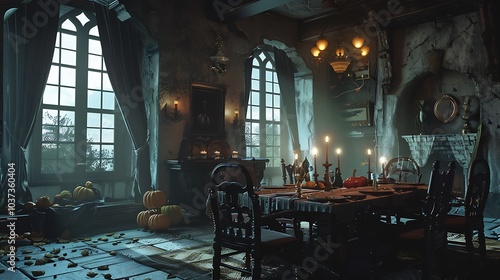 Naklejka premium A spooky lunch with costumed things pillows and chairs