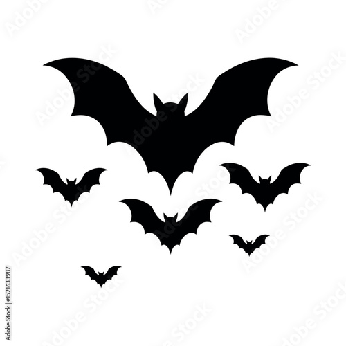 Naklejka premium A spooky swarm of flying bat silhouettes for Halloween.