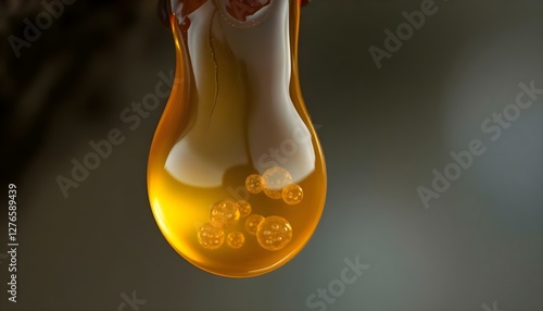 © KWY, Obraz premium a spoon full of liquid sitting on top of a table
