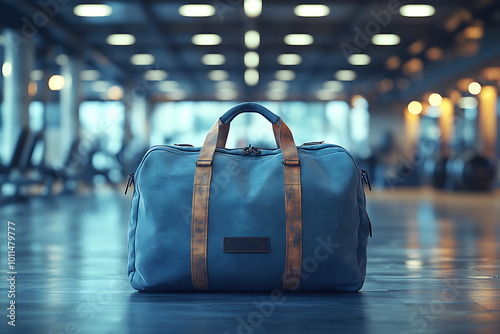 Obraz premium A sports bag rests on a bench in a well-decorated gym locker room. Modern...