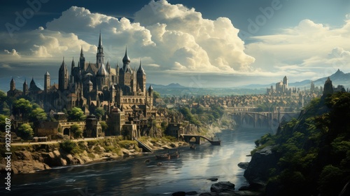 Fototapeta premium A sprawling medieval city with towering castles