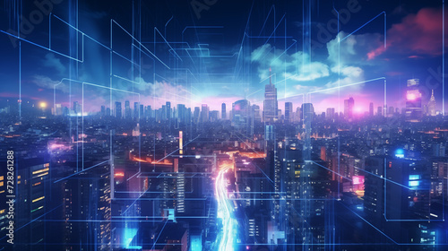 Obraz premium A sprawling metropolis illuminated by the twinkling lights of towering...