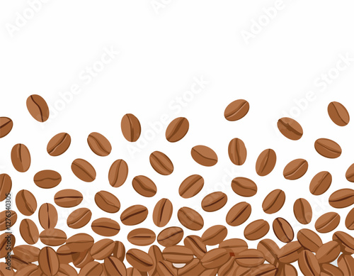 © krisana, Fototapeta premium A spread coffee beans isolated on white background and copy space