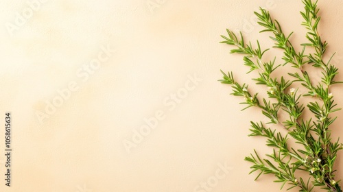 Fototapeta premium A sprig of fresh herbs on a soft, neutral background.