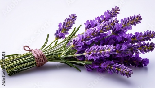 © Stella, Fototapeta premium a sprig of fresh lavender with purple buds isolated on a clean white background