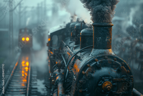Fototapeta premium A sputtering engine emitting dark smoke, illustrating the pollution and...