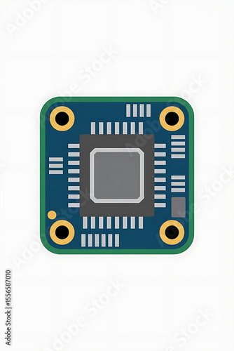 © ramdano, Obraz premium A square circuit board with a central chip.