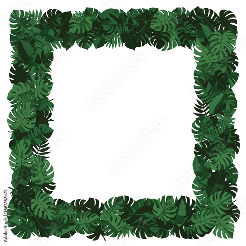 Fototapeta premium A square frame composed of lush green tropical leaves, perfect for design...