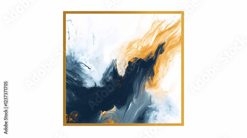 © Thiago, Naklejka premium A square frame with a golden border on a white background featuring an abstract painting of lyrical abstraction. generative ai. Lyrical Abstract. Illustration