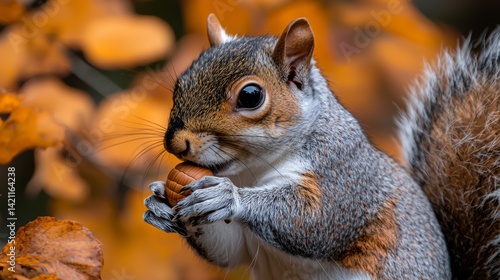 © Ilona, Fototapeta premium A squirrel eating a nut in front of a tree