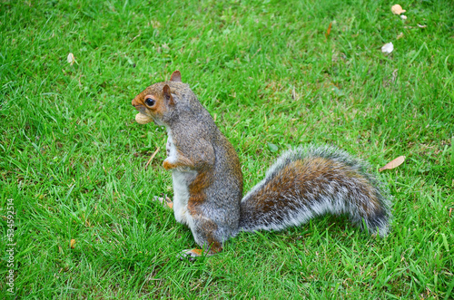 © Annini, Obraz premium A squirrel eating a peanut on grass