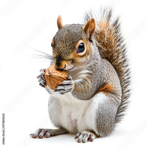 © Jang, Fototapeta premium A squirrel holding a nut, isolate on white background
