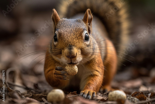 © forenna, Obraz premium a squirrel holding a nut up close, Generative AI