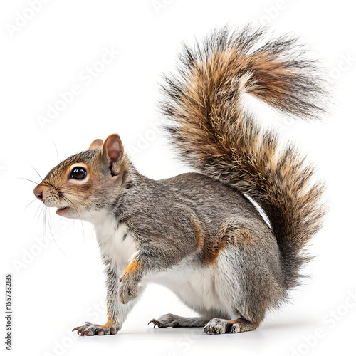 © Worraphatta, Fototapeta premium A squirrel is posing in a straightforward manner, isolated on a white background.