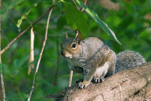 © Wattophotos, Fototapeta premium A squirrel is resting on a tree in a park