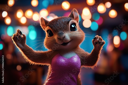 Fototapeta premium A squirrel is wearing a pink dress and is smiling