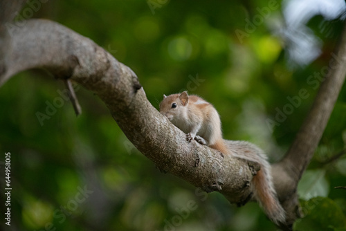 © NC, Fototapeta premium A squirrel nimbly climbs a tree branch, its claws digging into the bark.