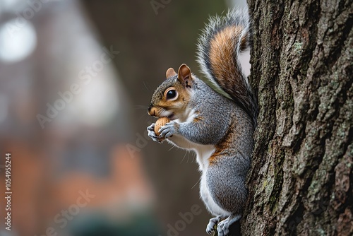 Fototapeta premium A squirrel perched on the trunk of an old oak tree