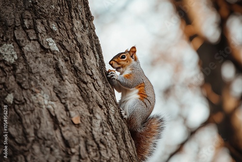 Fototapeta premium A squirrel perched on the trunk of an old oak tree